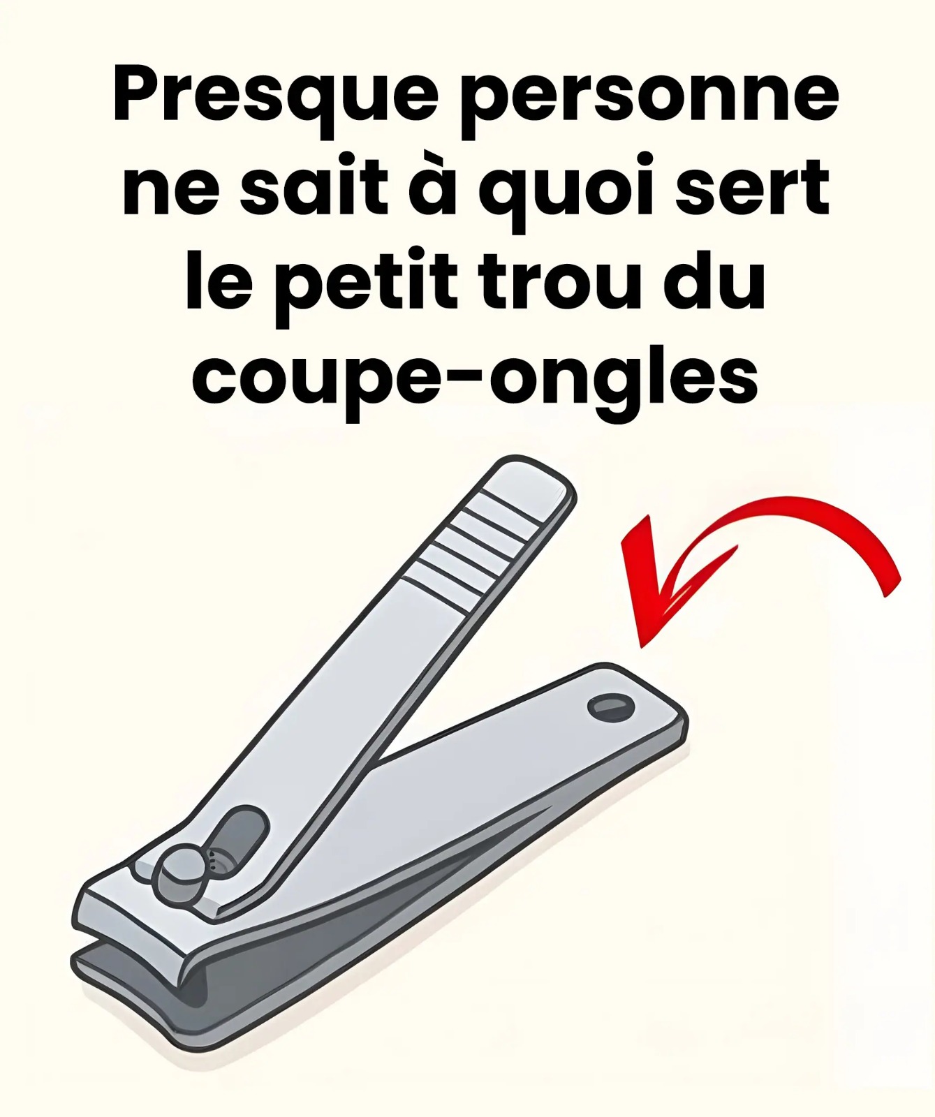 On l’utilise sans y penser, presque machinalement. Le coupe-ongles fait partie de ces objets du quotidien que l’on croit connaître par cœur. Pourtant, un détail intrigue souvent sans que l’on s’y attarde vraiment : ce petit trou rond, discrètement placé à son extrémité. Décoratif ? Défaut de fabrication ? Pas du tout. Ce minuscule élément cache en réalité plusieurs fonctions aussi simples qu’astucieuses, et il mérite clairement qu’on s’y intéresse.