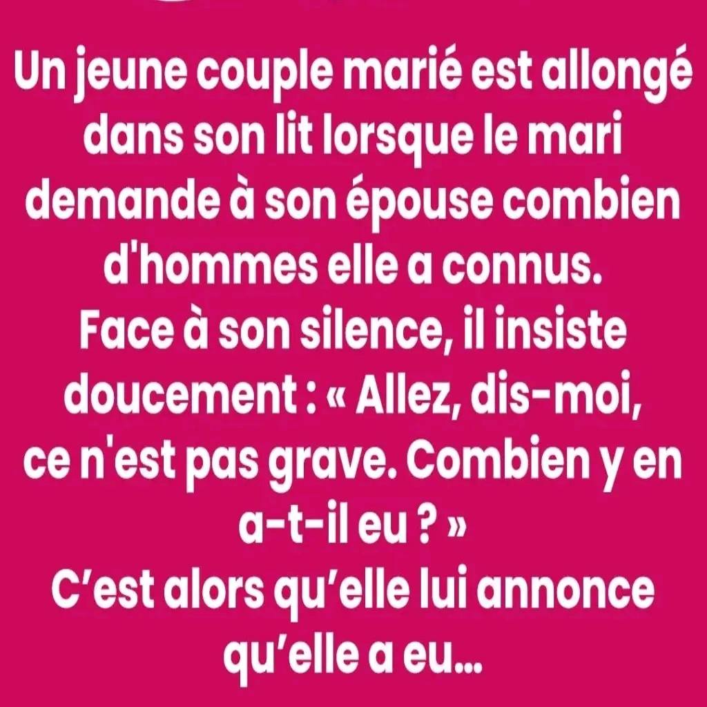 — Ma chérie… je me demandais… combien d’hommes ont partagé ta vie avant moi ?